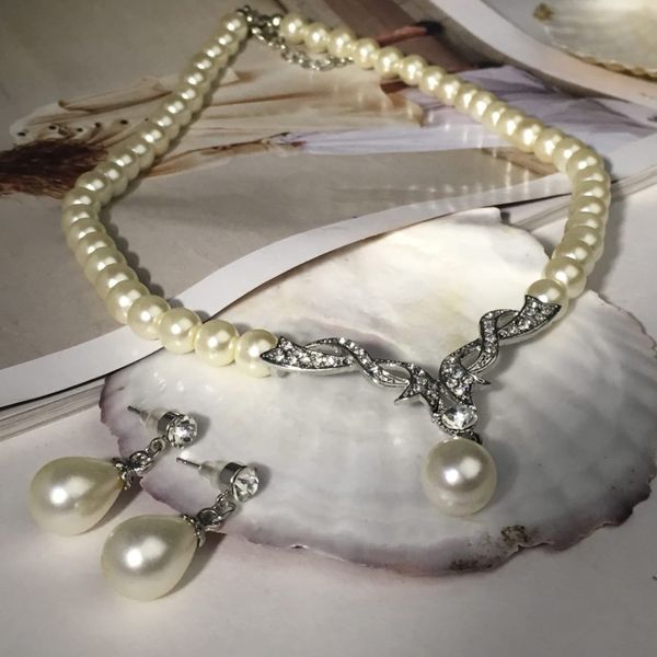 Комплект: серьги, колье "Вернисаж" жемчужная капля, цвет белый, цвет серебристый