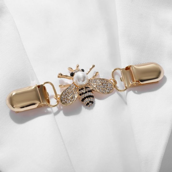 Зажим для кардигана "Шмель", цвет чёрно-белый, цвет золотистый