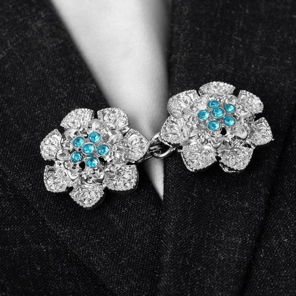 Зажим для кардигана "Цветок", цвет голубой, цвет серебристый