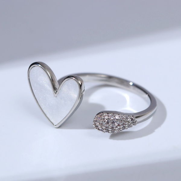 Кольцо "Сердце" мультяшное, цвет белый в черненом серебре