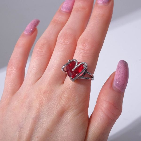 Кольцо "Сердце" с камнем, цвет красный, цвет серебристый, безразмерное