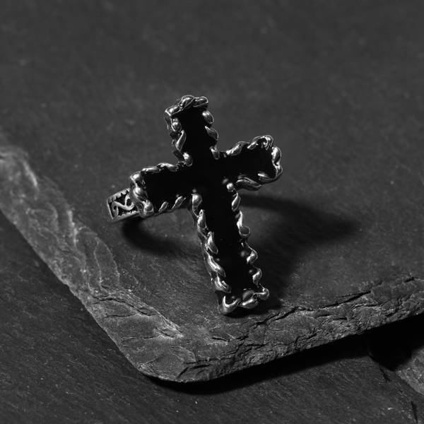 Кольцо "Перстень" крест, цвет чернёное серебро, безразмерное