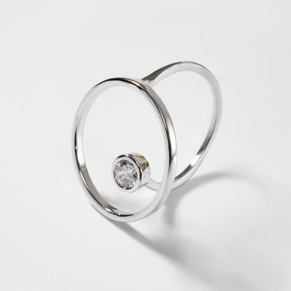 Кольцо "Тренд" круг, цвет белый, цвет серебристый, безразмерное