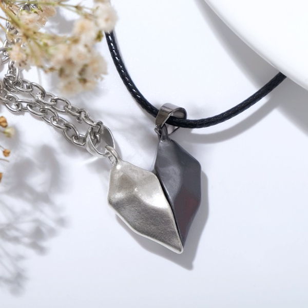 Кулон "Неразлучники" на магните, половинки сердца, цвет чёрно-серебряный