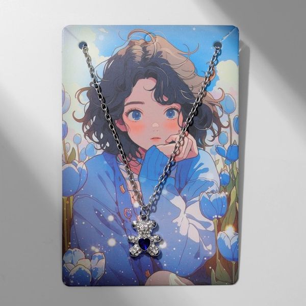 • Кулон «Мишка» с сердечком, цвет бело-синий, цвет серебристый, 40 см
