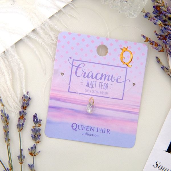 Кулон "На леске" кристаллик, цвет белый, цвет золотистый, 30 см (стразы, леска, бижутерный сплав)