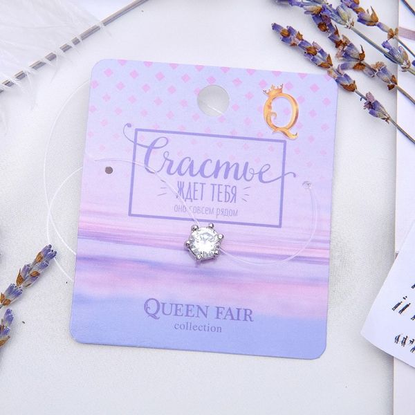 Серьги-кольца со стразами d=5.5 см, белые, цвет се..