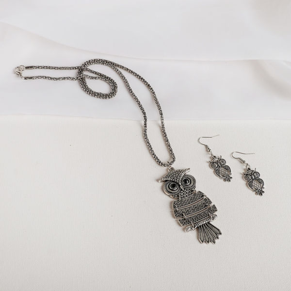 Гарнитур ассорти: серьги, кулон "Сова", цвет чернёное серебро, L=60