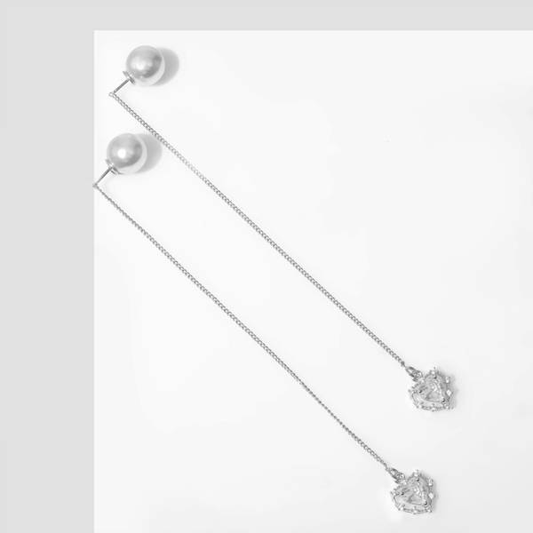 Серьги с жемчугом "Бусина" сердечки, цвет белый, цвет серебристый