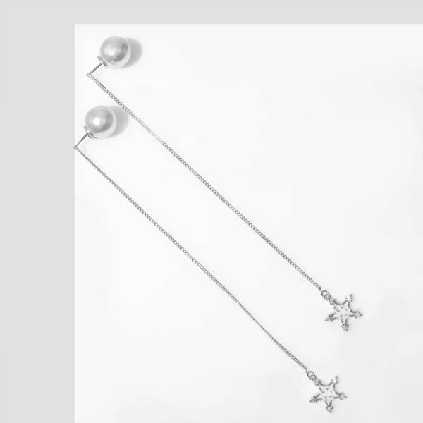 Серьги с жемчугом "Бусина" звёздочки, цвет белый, цвет серебристый