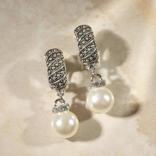 Клипсы "Грейс" диагональ бусин, цвет белый, цвет серебристый