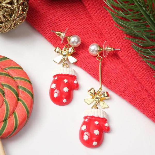 Серьги "Новогодние" висячие, варежки, цвет красно-белый, цвет золотистый