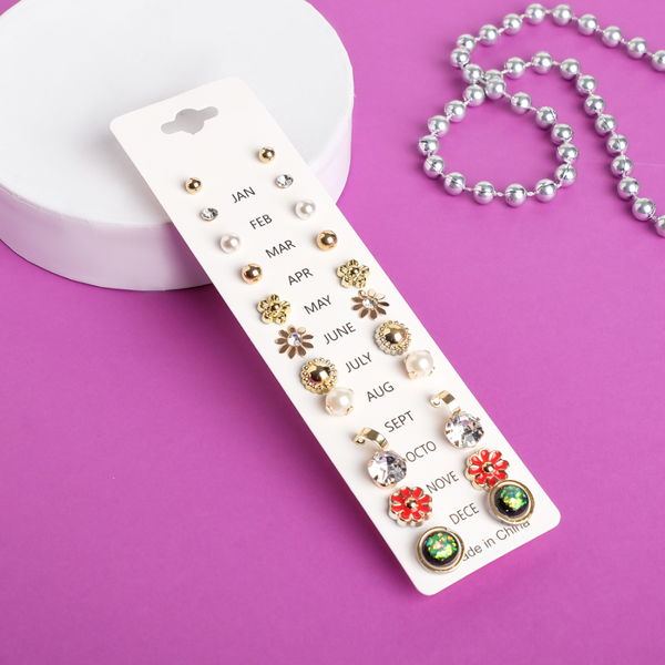 Пусеты 12 пар One year, летний день, цветные, цвет золотистый