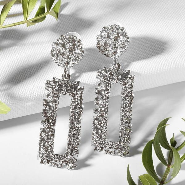 Серьги со стразами «Прямоугольник» 30×9 мм, белые, цвет серебристый
