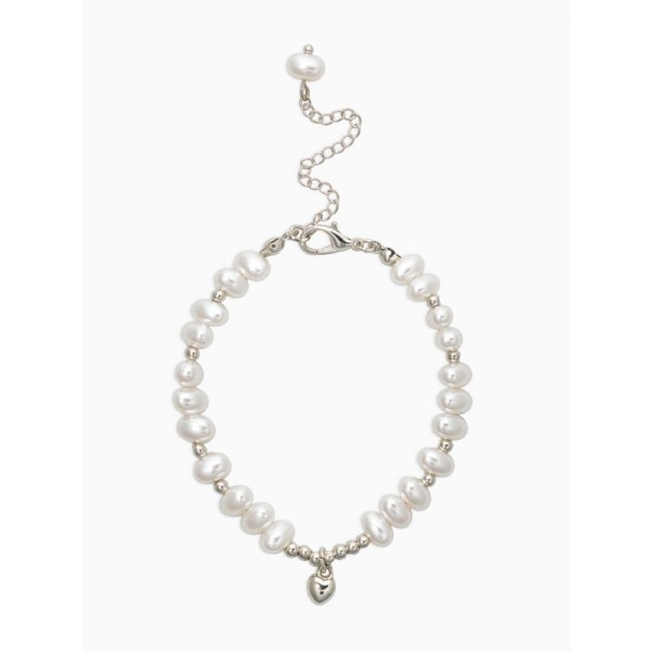 • Браслет жемчуг «Рисинки с сердцем», L=18 см, белый, цвет серебристый