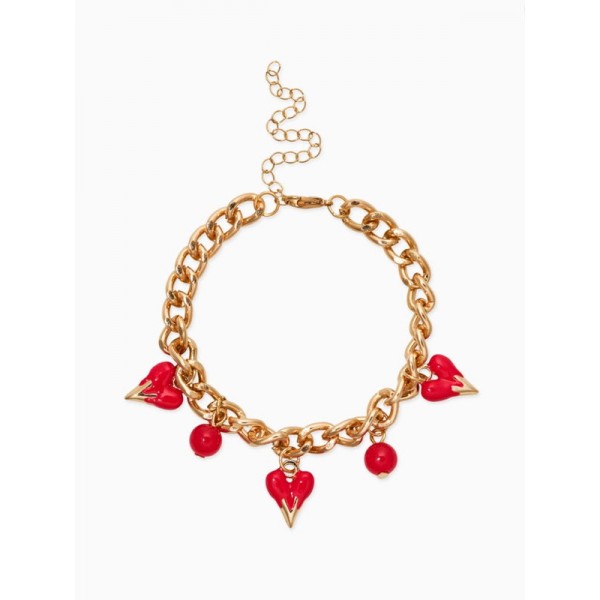 Браслет на цепи «Вишневый рай. Сердечки», L=17 см, красный, цвет золотистый