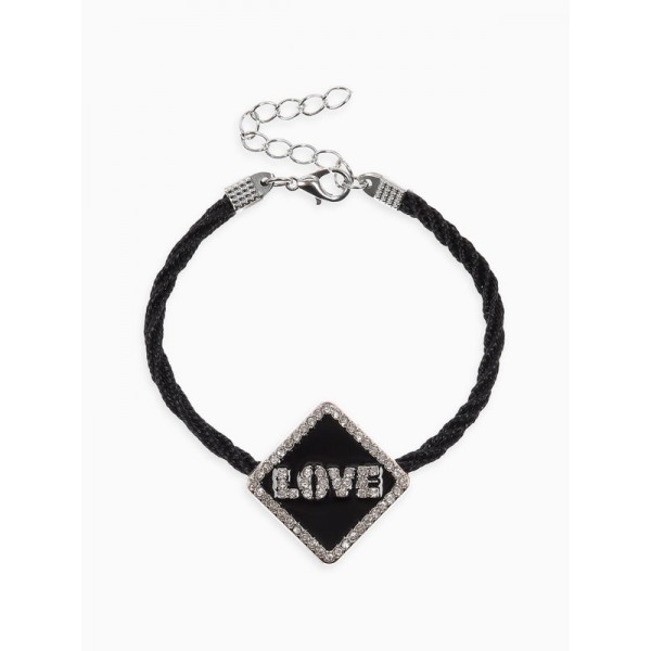 Браслет на шнурке Love, стразы, L=18 см, чёрный