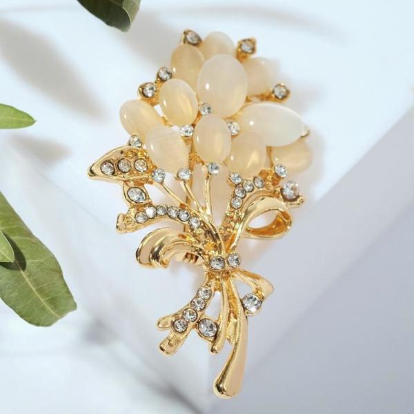 Брошь "Букет с жемчугом", цвет белый, цвет серебристый