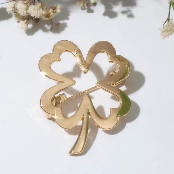 Брошь "Клевер" роскошный, цвет тёмно-зелёный, цвет золотистый