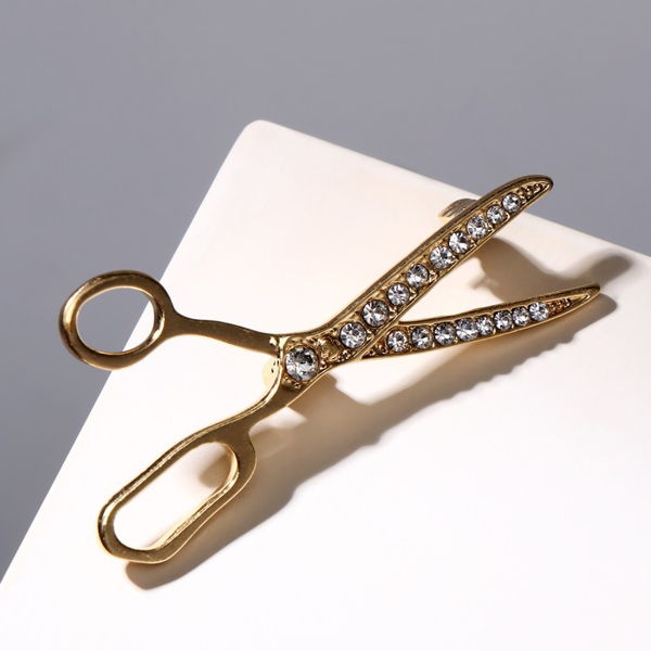 Брошь "Ножницы", цвет белый, цвет золотистый