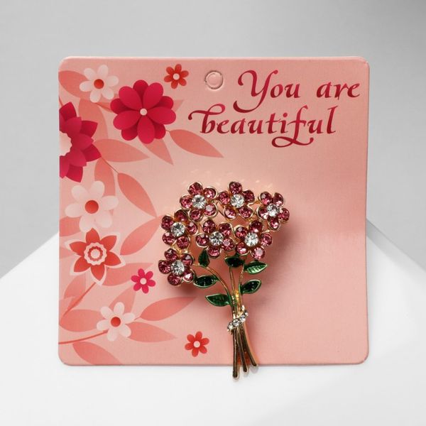 Брошь "8 марта" букет цветов, цветная, цвет золотистый