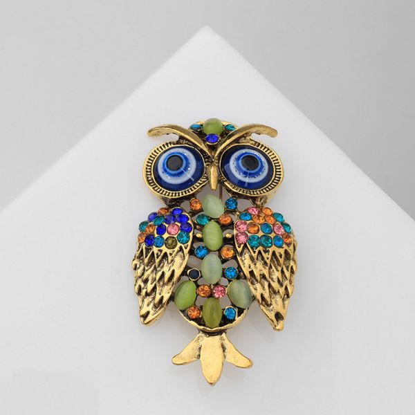 Брошь «Сова», цветная, цвет золотистый