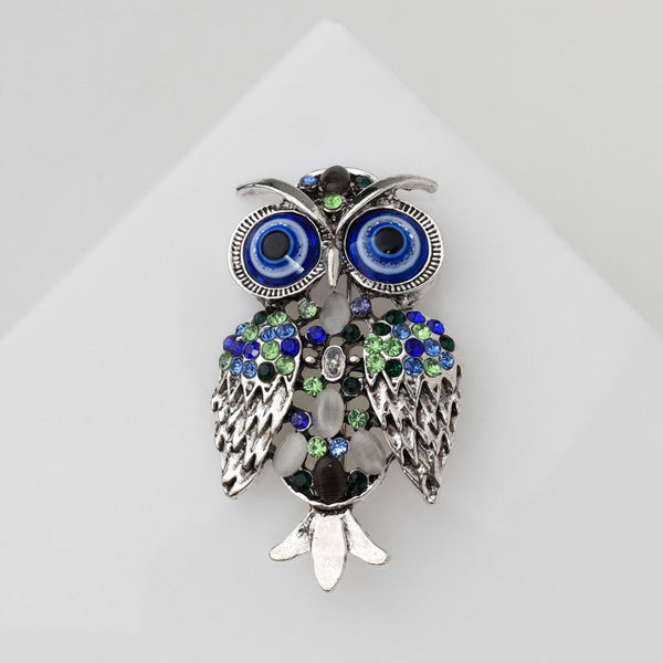 Брошь «Сова», цветная, цвет серебристый