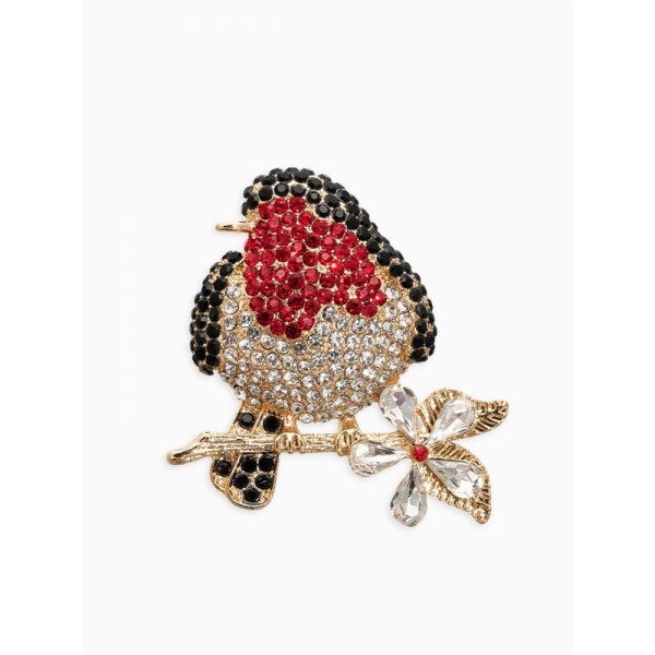 Брошь «Снегирь» в стразах, чёрно-красная, цвет золотистый