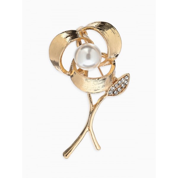 Брошь «Цветок Тринити с жемчугом», белая, цвет золотистый