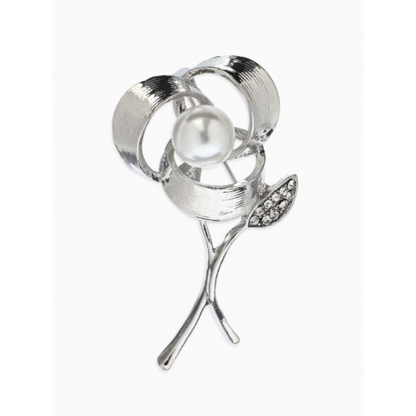 Брошь «Цветок Тринити с жемчугом», белая, цвет серебристый