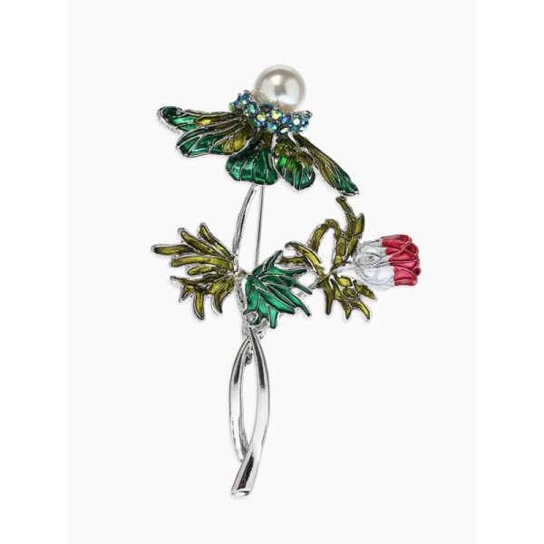 Брошь «Репей», цветок с бусиной, цветная, цвет серебристый