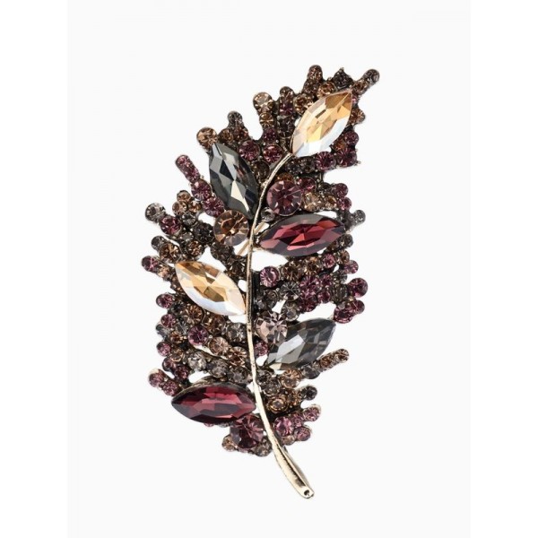 • Брошь «Императрица. Лист», бордово-коричневая, цвет золотистый