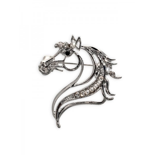 Брошь со стразами «Лошадь», белая, цвет серебристый