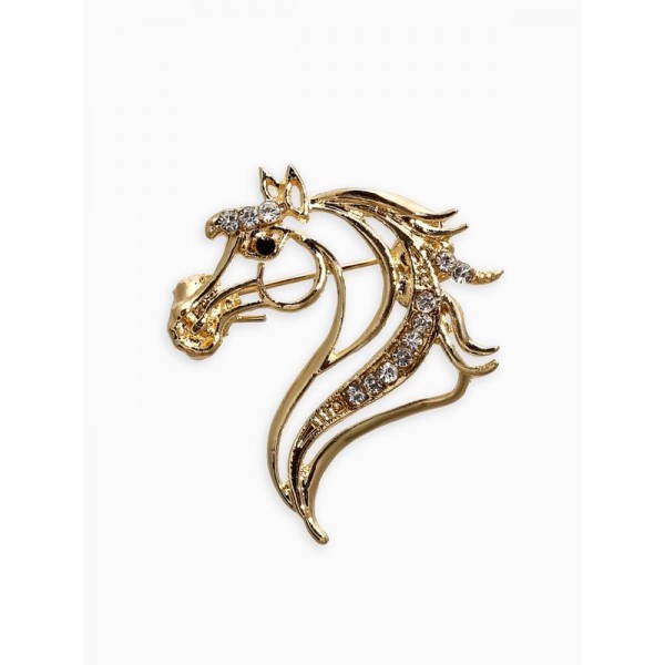 Брошь со стразами «Лошадь», белая, цвет золотистый