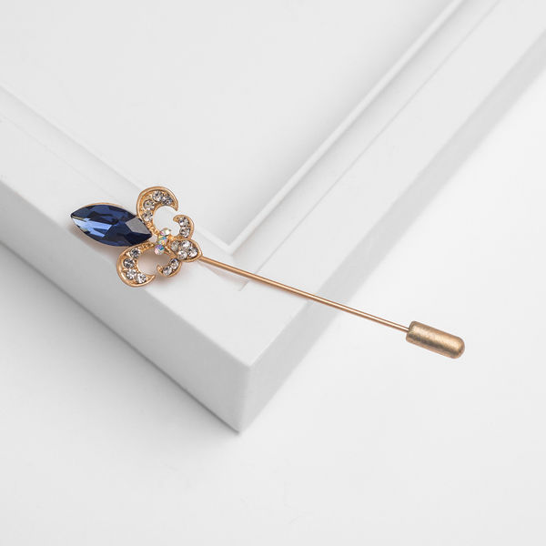 Булавка "Лилия королевская" 7,6см, цвет бело-синий в матовом золоте