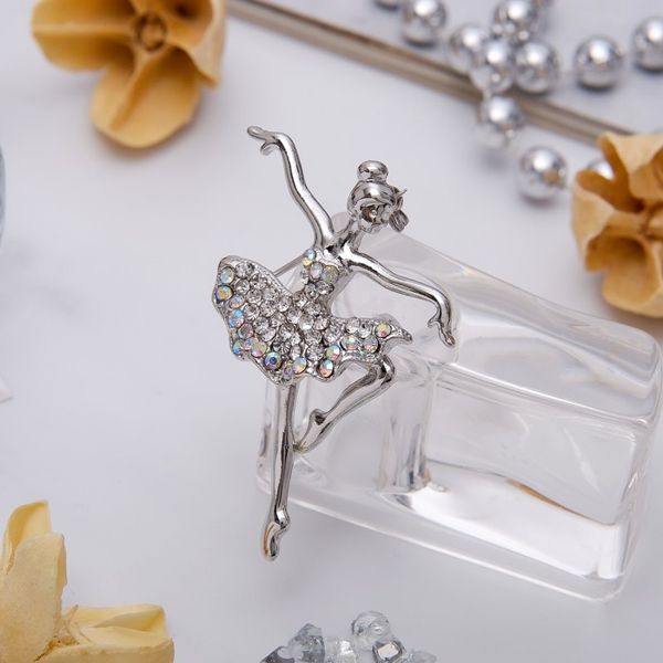 Брошь "Балерина", цвет белый, цвет серебристый