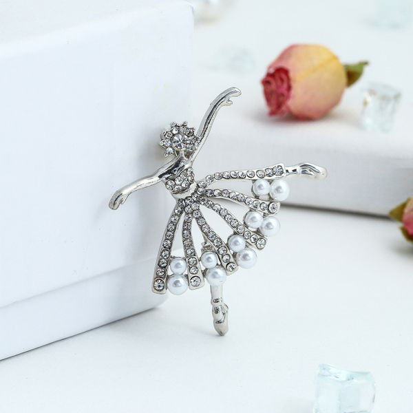 Брошь "Балерина", цвет белый, цвет серебристый