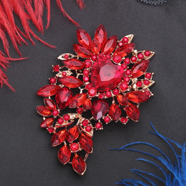 • Брошь "Императрица" сердце цветущее, цвет красный, цвет золотистый