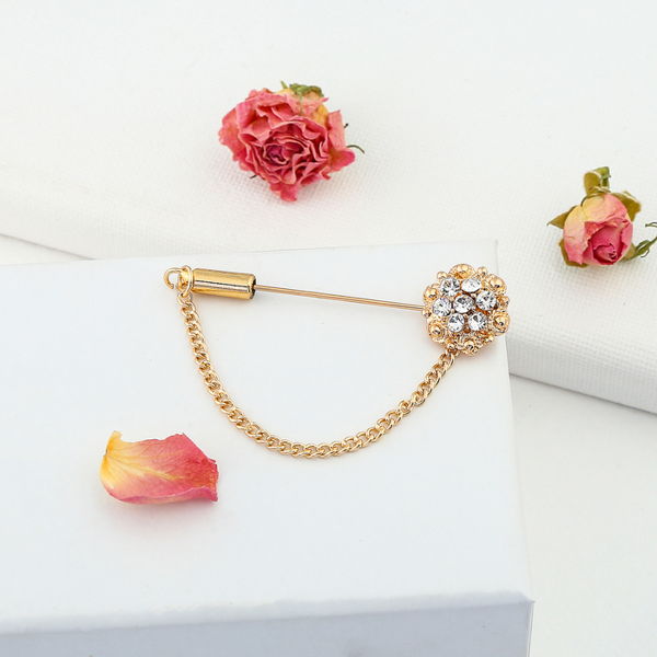 Булавка "Цветочек", 4 см, цвет белый, цвет золотистый (стразы)