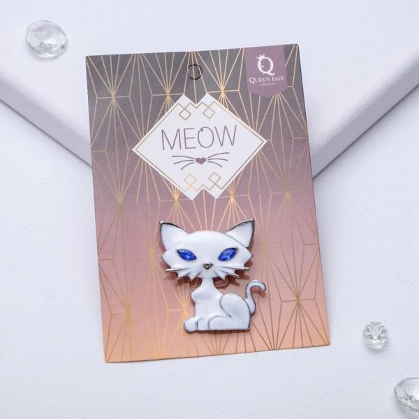 Брошь "Кошечка" хитрая, цвет бело-голубой, цвет серебристый (стразы, эмаль)