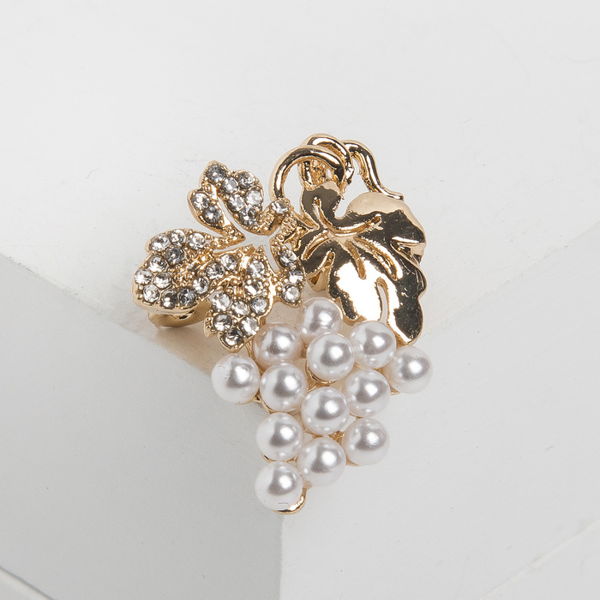 Брошь "Виноград" мини, цвет белый, цвет золотистый (пластик, стразы, бижутерный сплав)