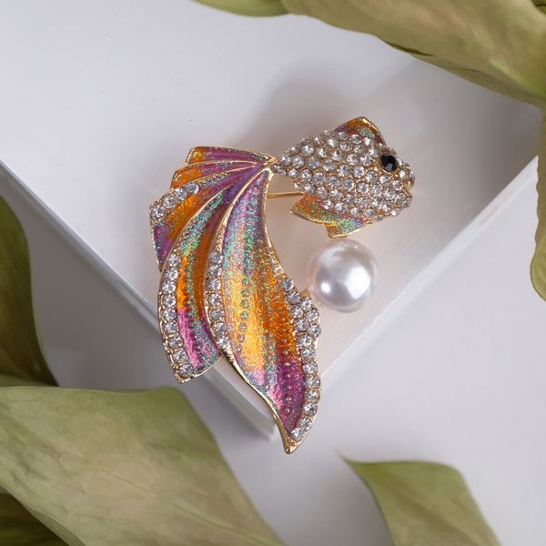 Брошь "Рыбка", цветная, цвет золотистый (стразы, эмаль, бижутерный сплав)