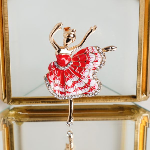 • Брошь "Балерина", цвет красно-белый, цвет золотистый
