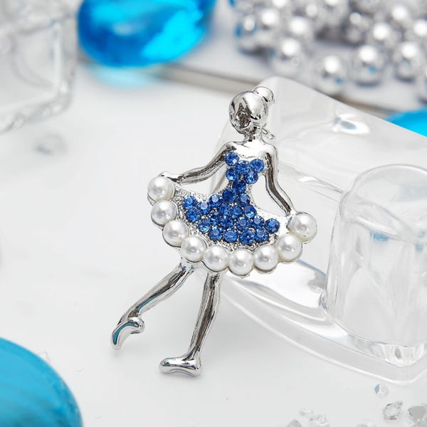 Брошь "Балеринка", цвет бело-сапфировый, цвет серебристый