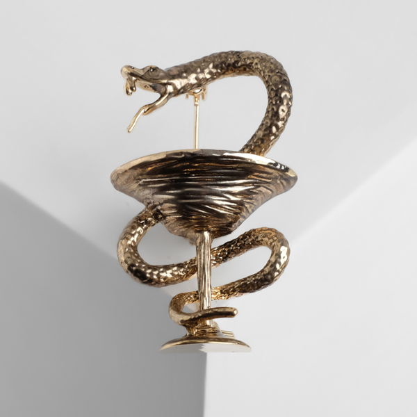Брошь "Змея в геральдике" знак медицины, цвет серы..