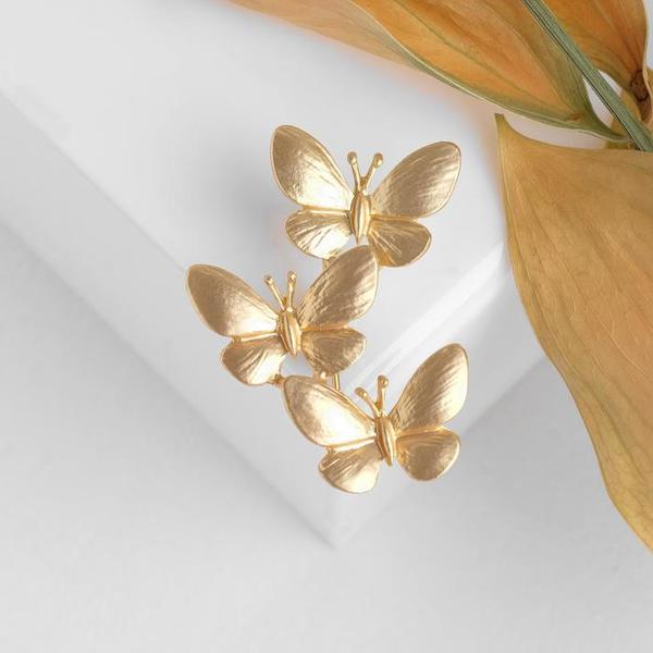 Брошь "Бабочки" трио 4,2 см х 3,5 см, цвет матовое золото