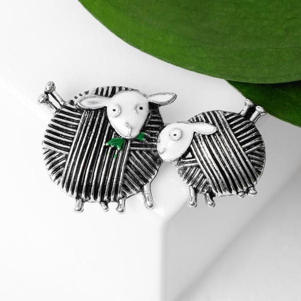 Брошь "Овечки" пара, цвет белый, цвет серебристый