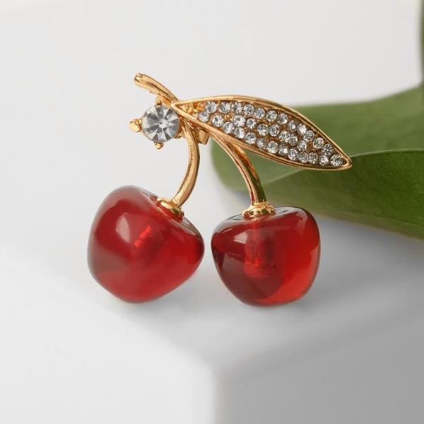 Брошь "Вишни" наливные, цвет бордовый, цвет золотистый