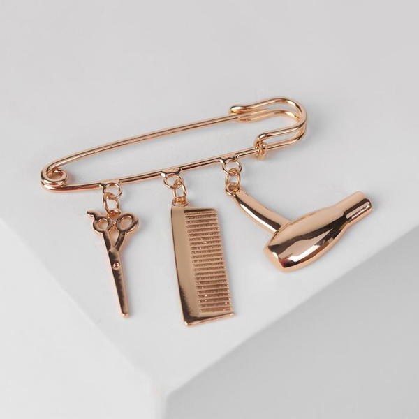 Булавка с Кулонми "Парикмахер", 5,5см, цвет золото