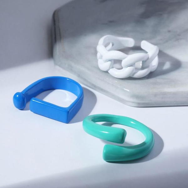 Набор 3 кольца "Формы", цвет белый, синий, зелёный, безразмерные
